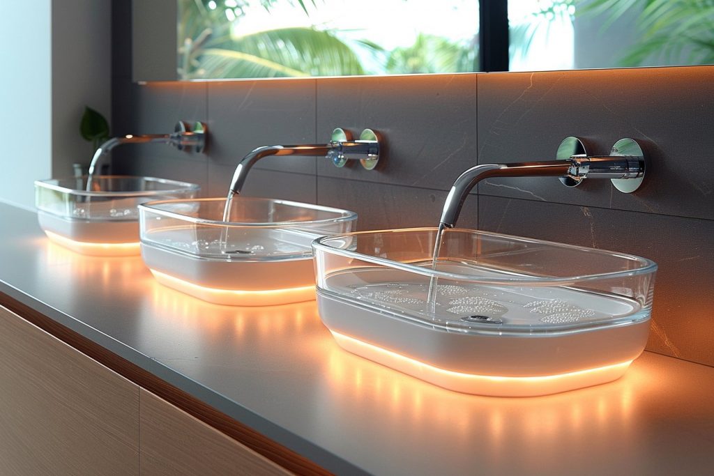 Pour une touche plus traditionnelle et élégante, la céramique est une excellente option. Ce matériau durable et facile à nettoyer s’harmonise bien avec diverses esthétiques de salle de bain. Cependant, il peut être plus fragile que d’autres matériaux et nécessiter des soins supplémentaires pour éviter les fissures.